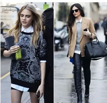 如果不喜欢也没关系,选款式特别一点的毛衣,但是注意,白衬衫的衣领是一定要露出来的,这才是经典之处。