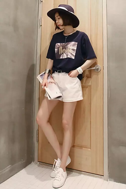 肉肉腿的妹子可以选择短款a字裙(一定要短!)a字裙,让胖大腿隐藏起来,当然廓形短裤也是可以穿的哦。