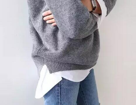 毛衣里面穿个衬衫,把袖子和下摆都拉出来,能做个时髦的造型呢!