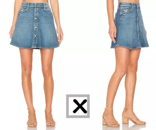 所以相对来说牛仔裙适合前排扣的设计(看下图对比)